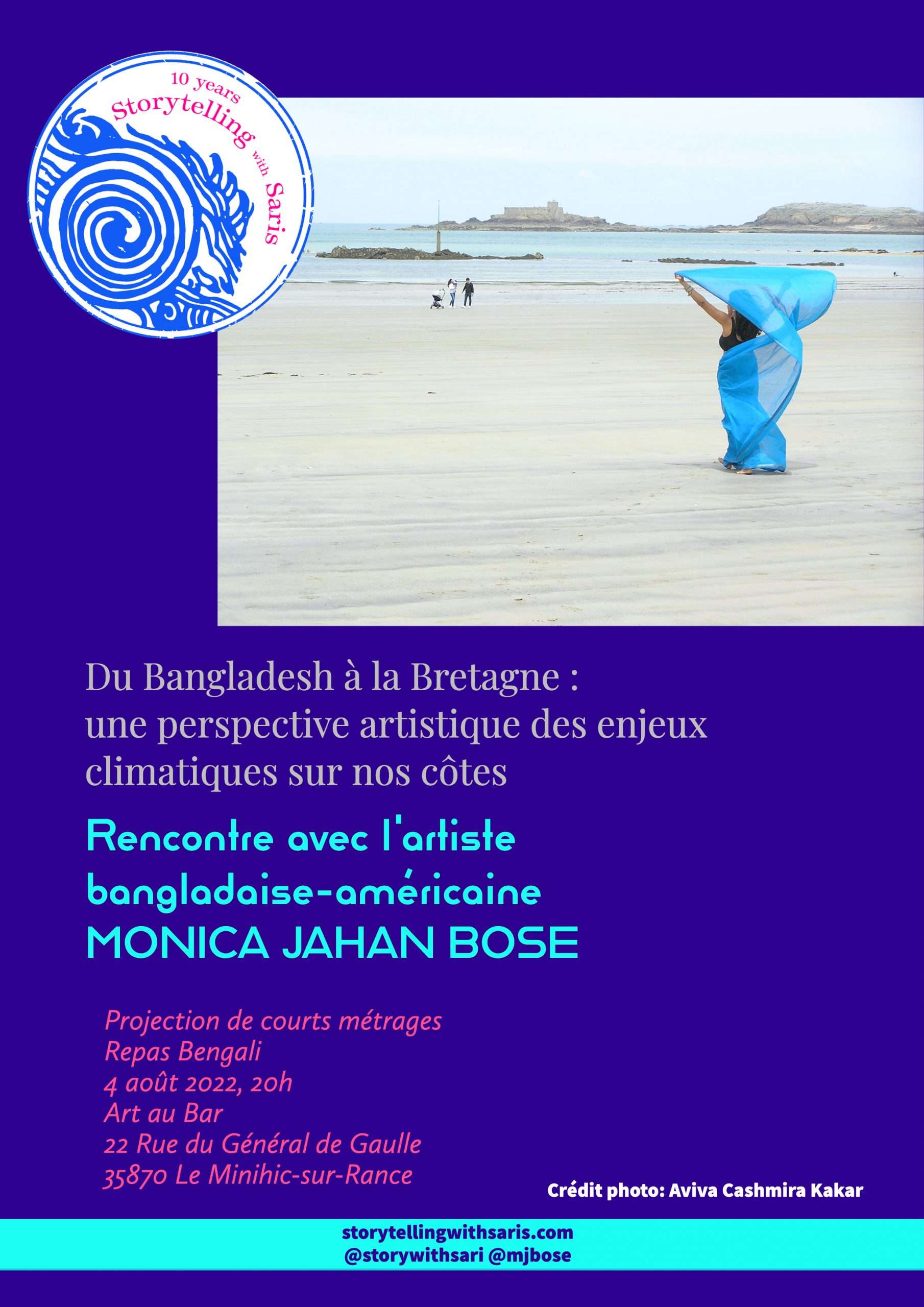 L’artiste et activiste Monica Jahan Bose souhaiterait présenter deux courts-métrages tournés lors de sa visite en France et residence à The Window en 2019 pour le projet « Storytelling with Saris ». Monica a créé des performances et s’est entretenue avec des Français résident en ville et à la campagne, notamment avec des fermiers et maraîchers de la vallée de la Rance. Son travail interroge notre consommation, nos perceptions du changement climatique et de la sécurité alimentaire, notamment dans les zones côtières particulièrement vulnérables.